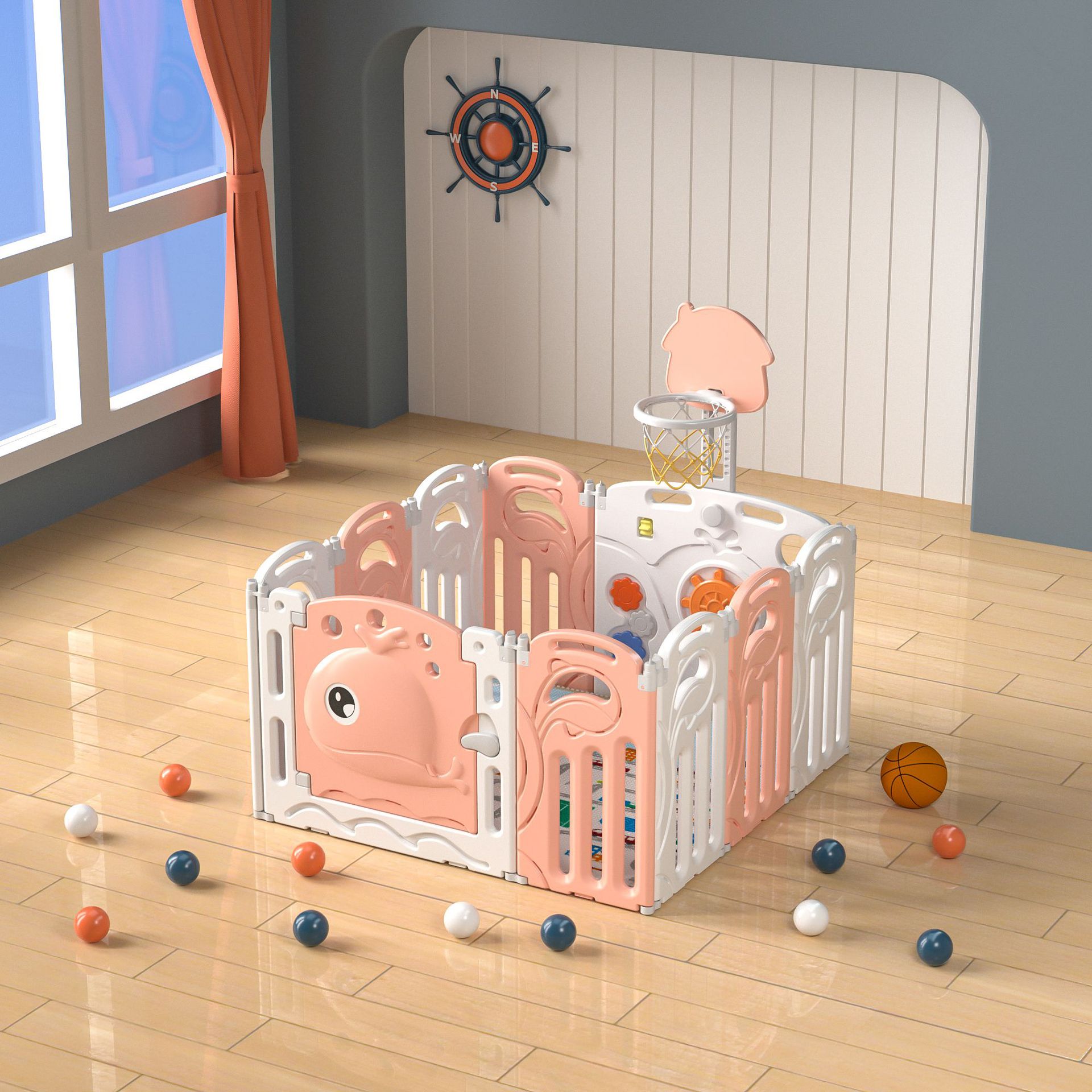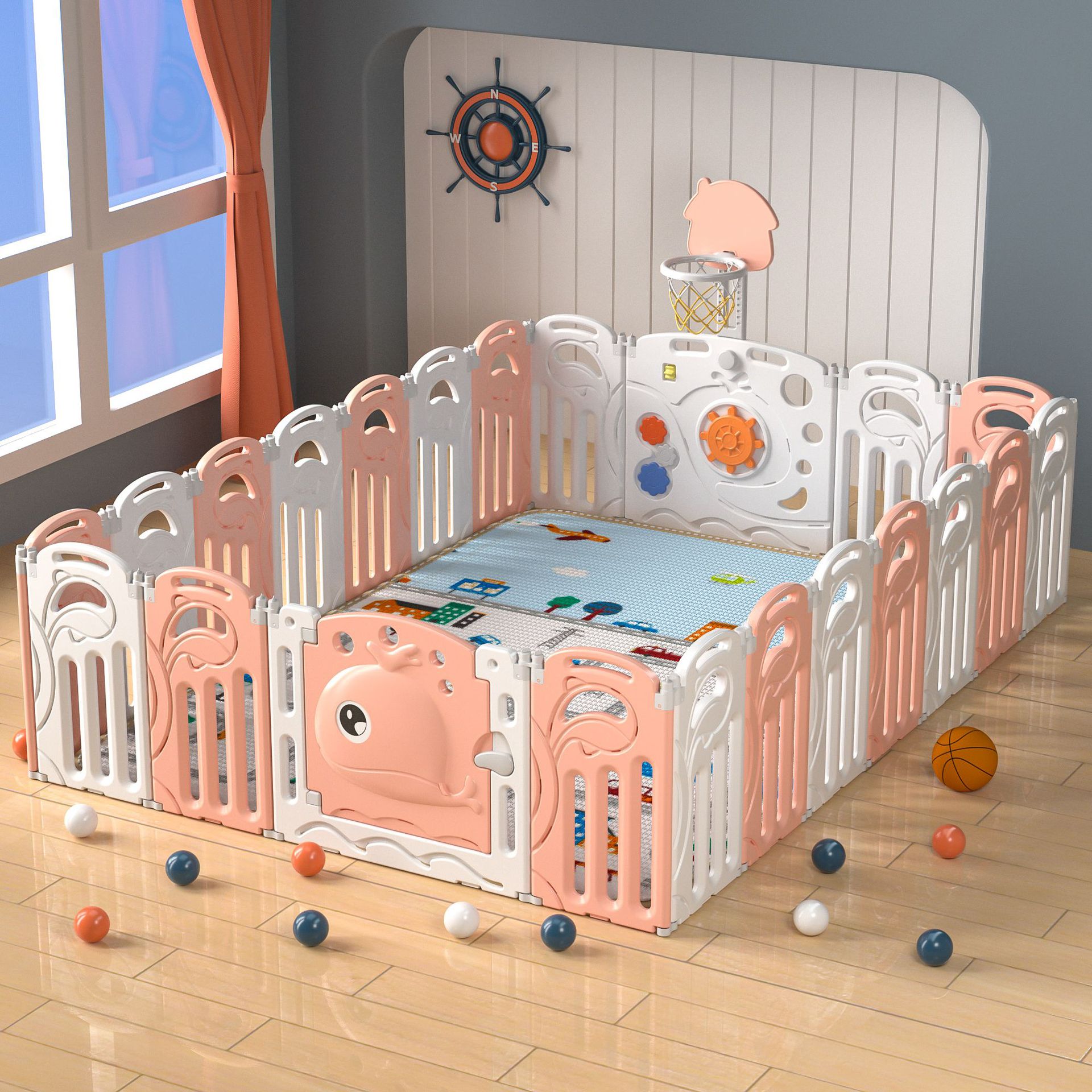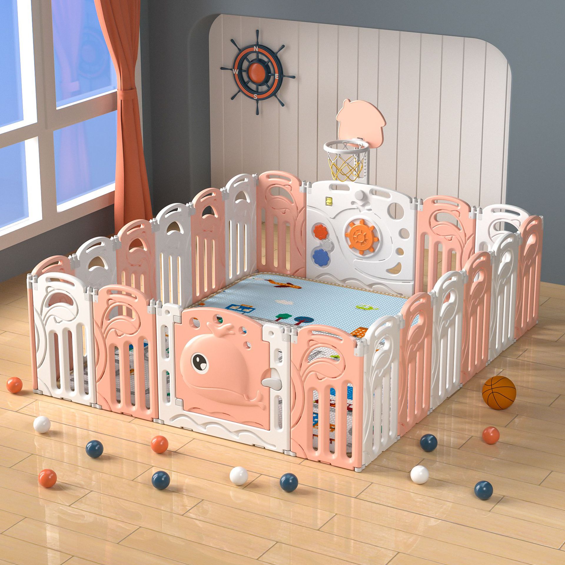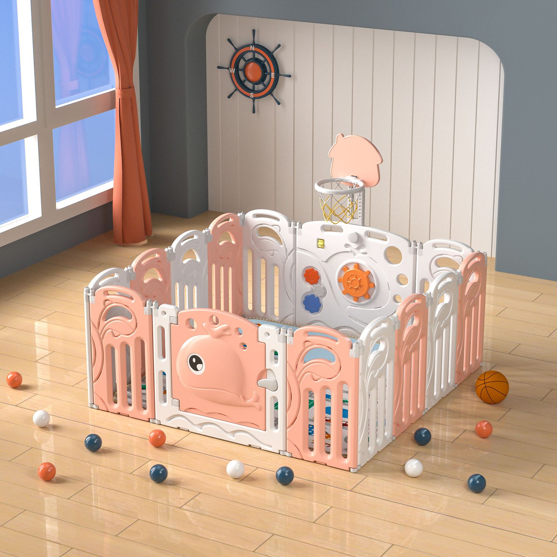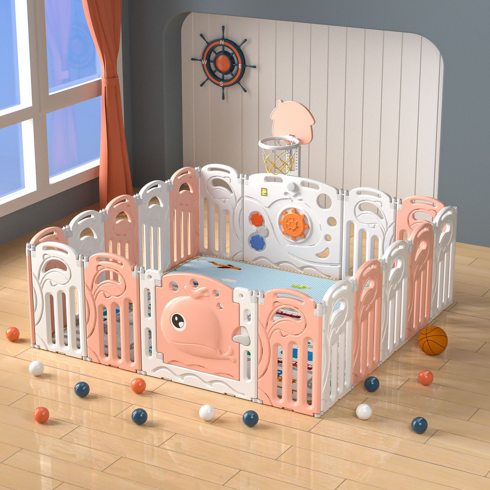 Whale fence white and pink 20+2+with basketball rack