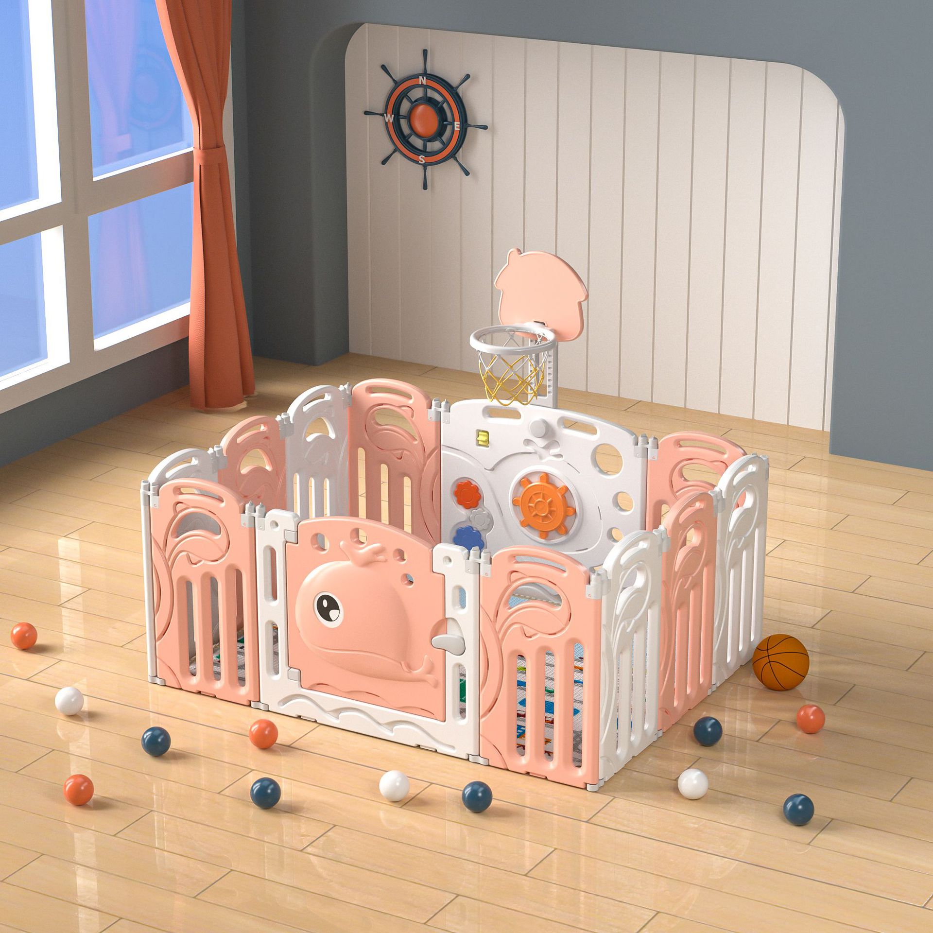 Whale fence white and pink 10+2+with basketball rack