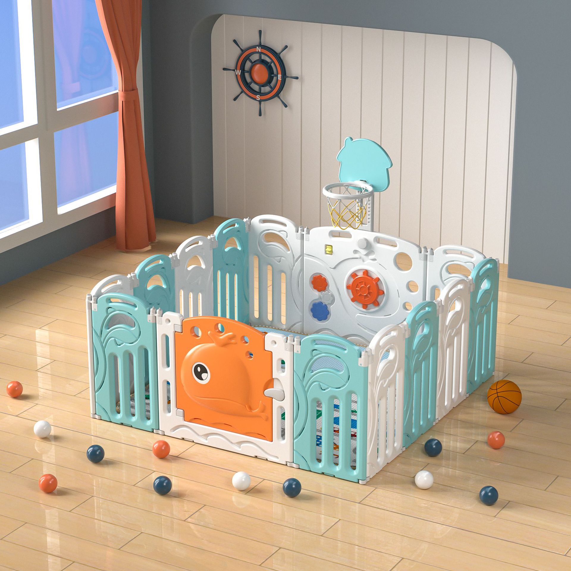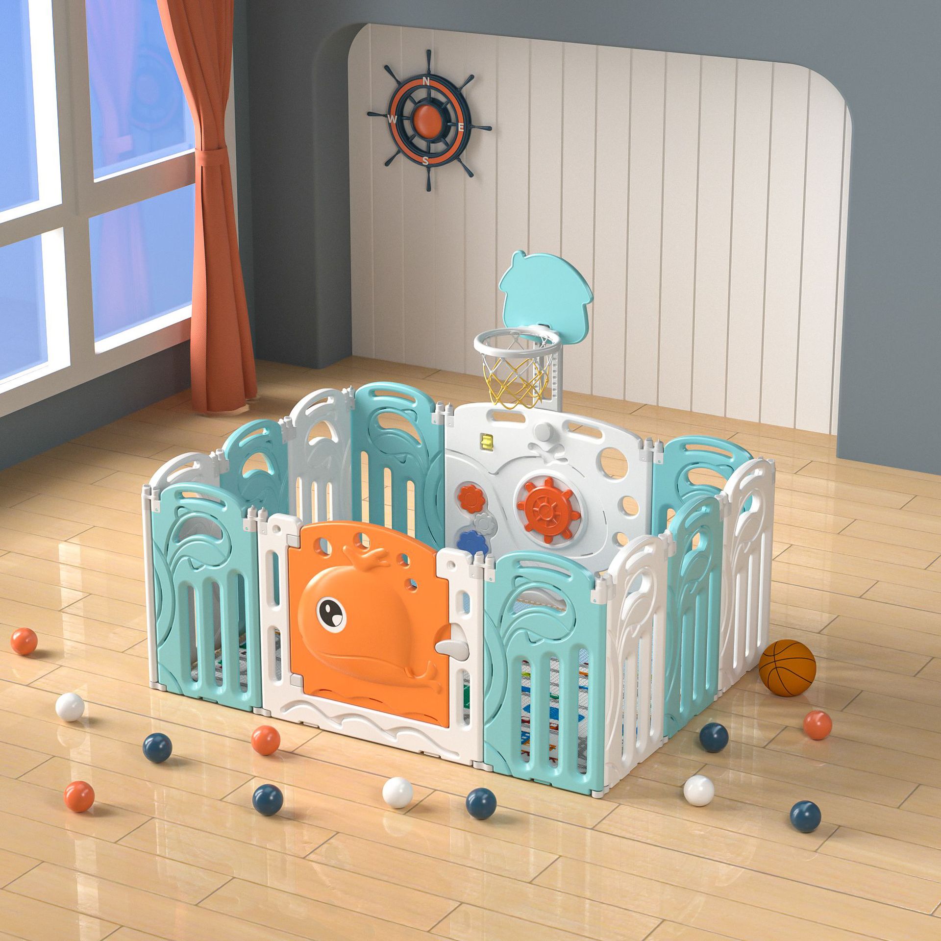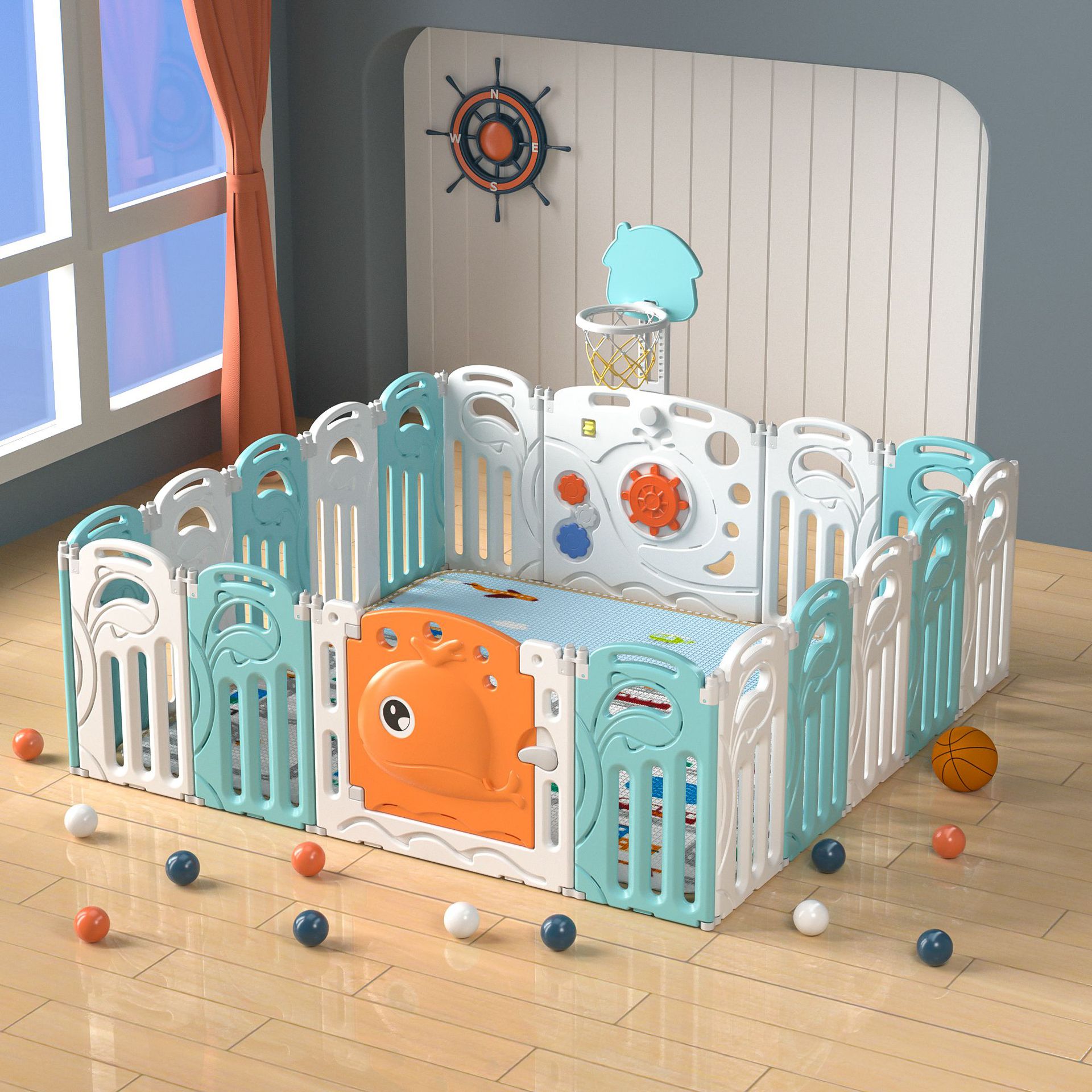 Whale fence green and white 16+2+with basketball rack