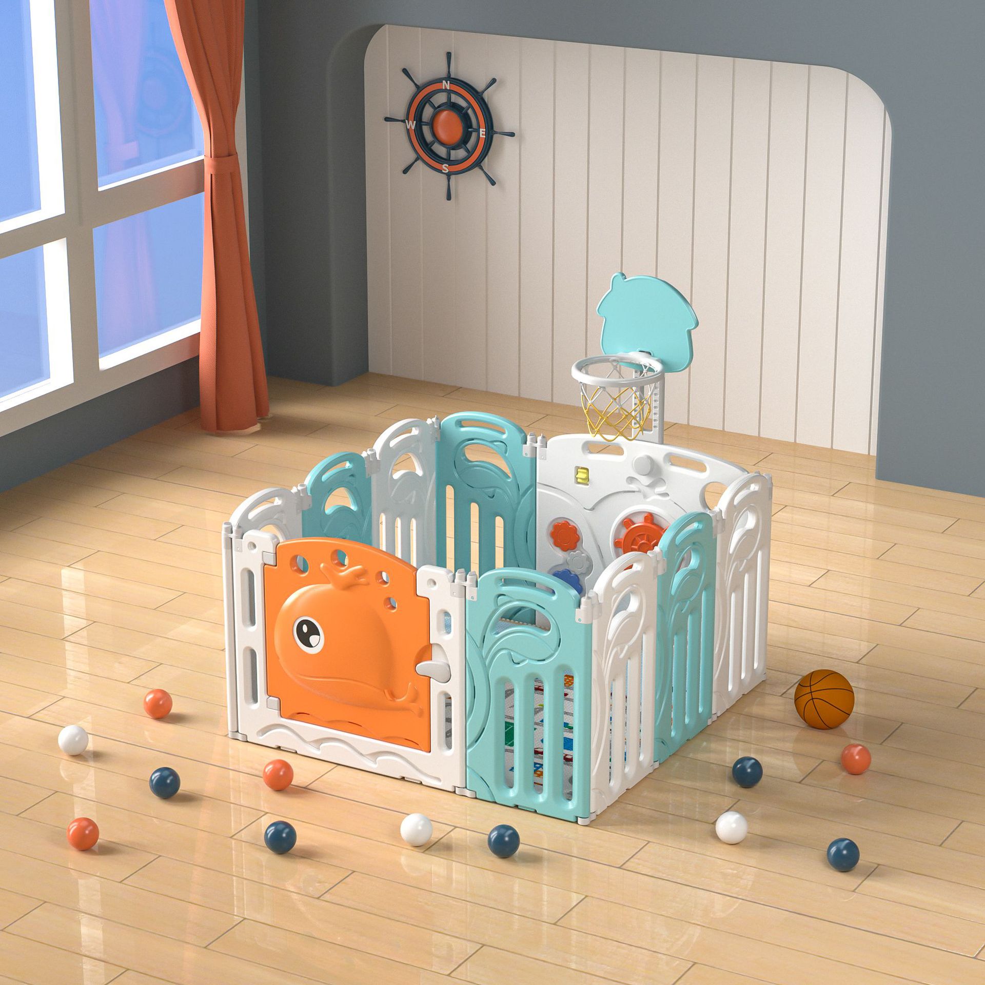 Whale fence yellow and white 16+2+with basketball rack
