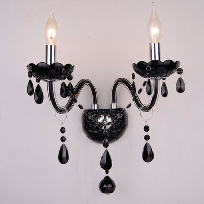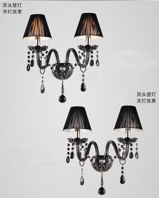 歐式黑色雙頭蠟燭水晶壁燈復古走道床頭燈壁燈ktv過道臥室牆壁燈