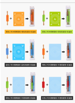 Specification: 40*30cm Orange Graduated Mat + Small Orange Wooden Rolling Pin, Color Box Packaging