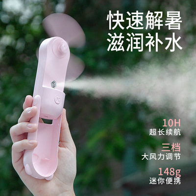Folding handheld desktop mini fan mist hydrating fan portable USB charger power bank student electric fan