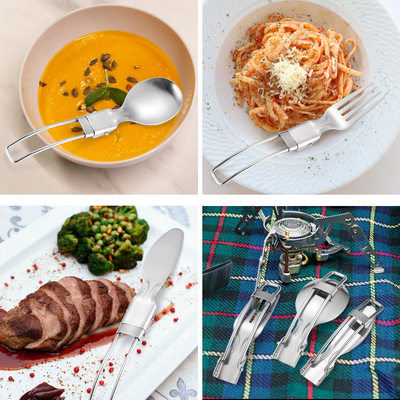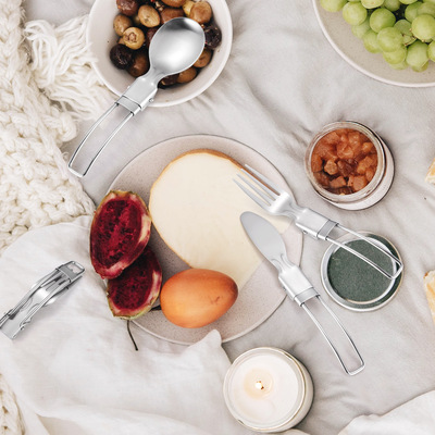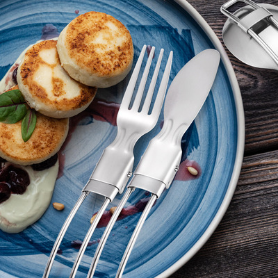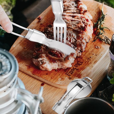 Cross-border stainless steel outdoor portable cutlery set travel telescopic foldable camping picnic knife fork spoon