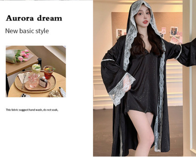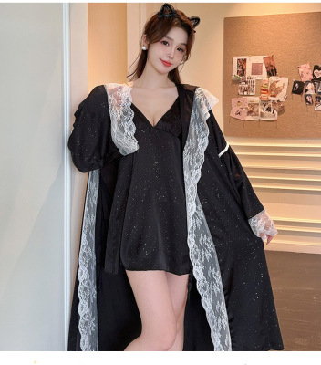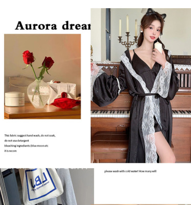 Ice and Snow Lace Camisole Nightgown Dress for Women, Spring and Autumn Season Goddess Battle Robe, Long Sleeve Sexy Lace Stargazer Homecoming Clothes