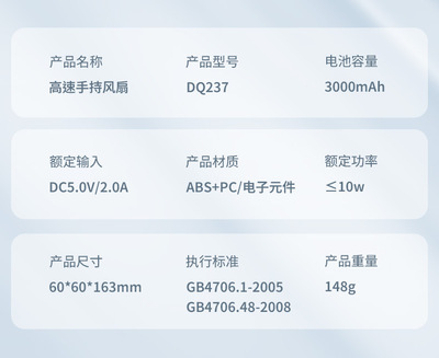 Product Accessories List: Fan Body*1, Type-C Charging Cable*1, English-Chinese Manual*1