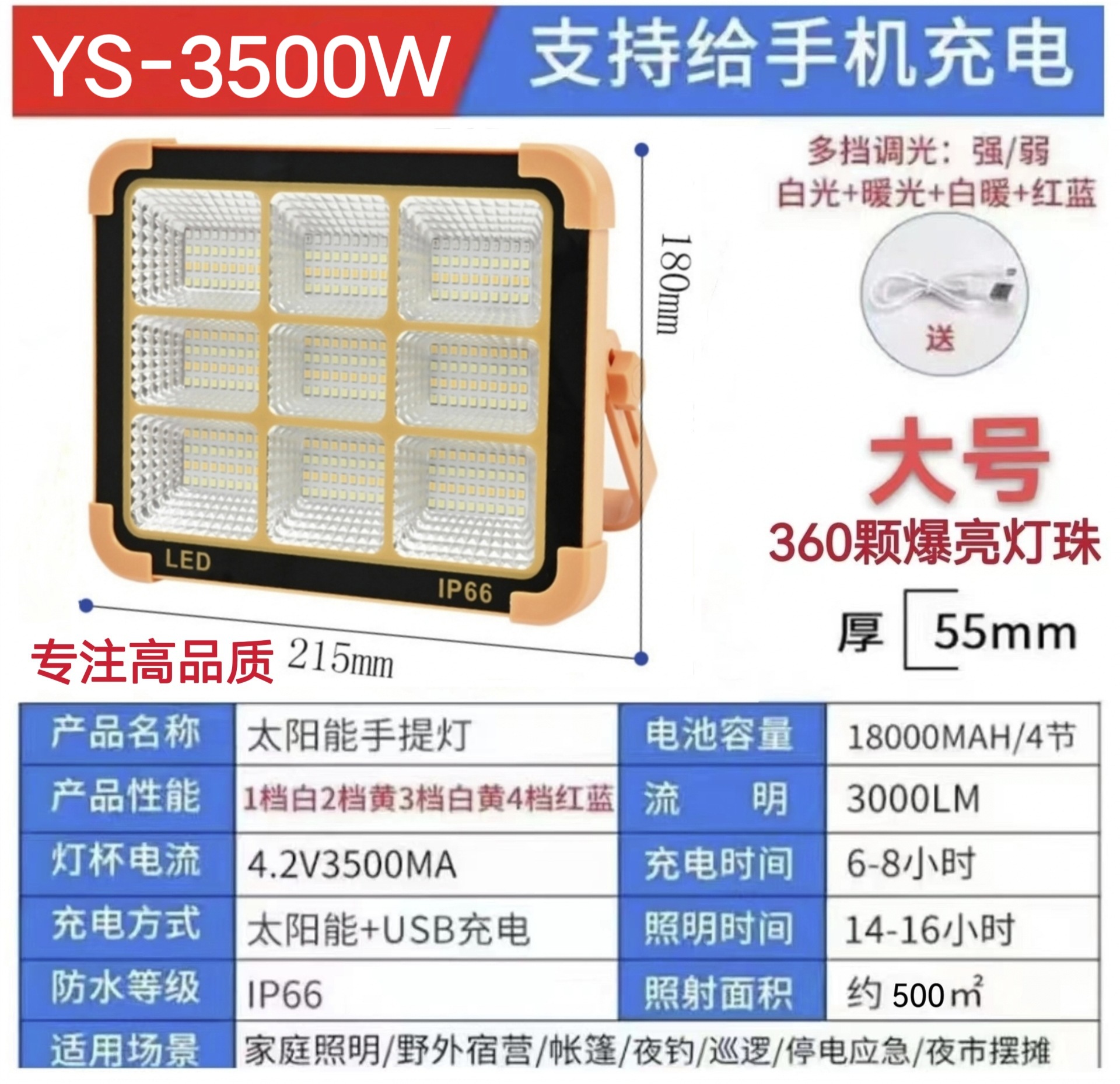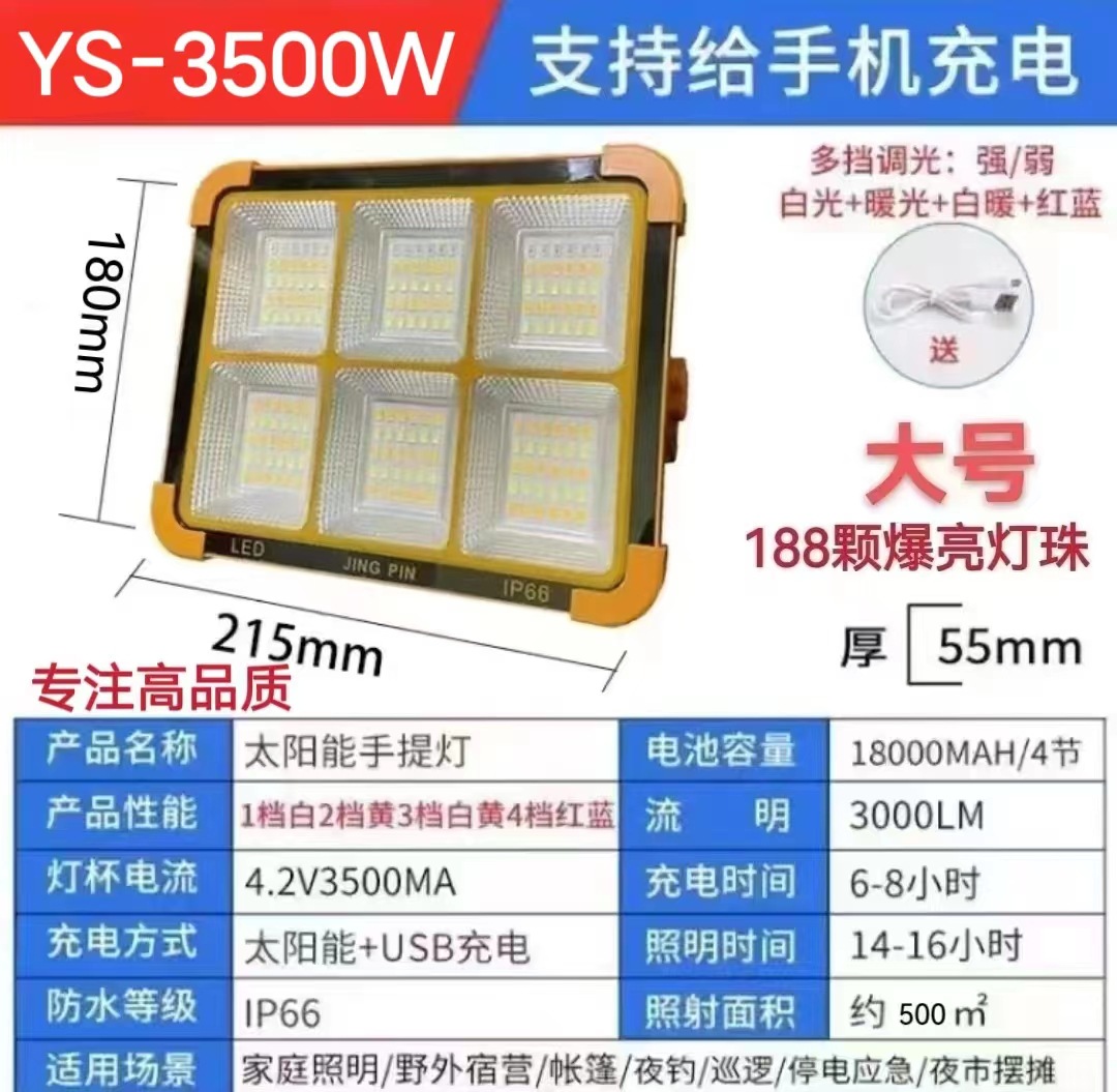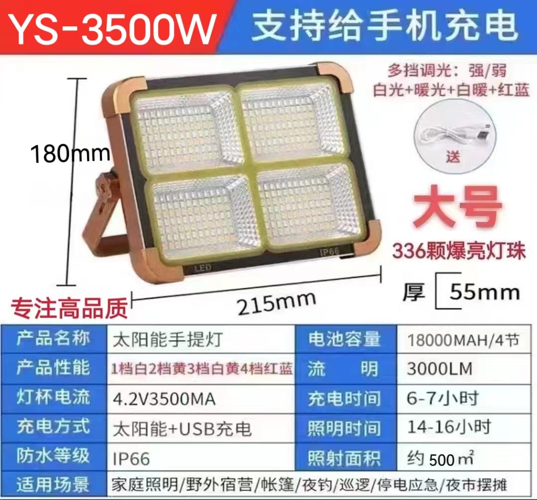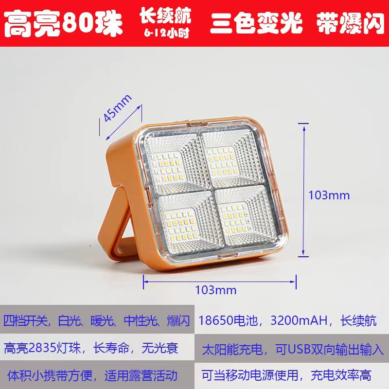 Solar-powered portable fast charging LED outdoor camping light, compact, ultra-bright, home use mobile emergency lighting lamp