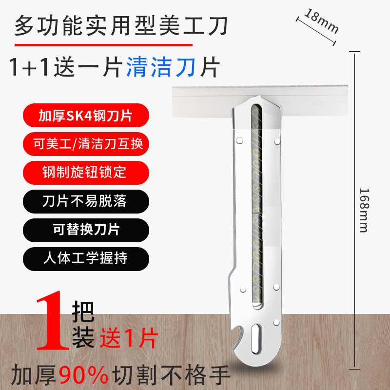 Multifunctional stainless steel utility knife, rust-proof, clean knife in one, 18MM wide wallpaper knife, cleaning wallpaper knife