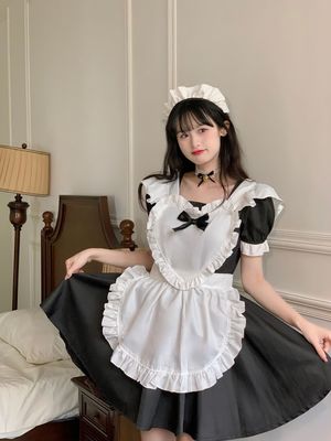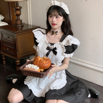 Anime black and white female maid outfit Japanese Alice cute Lolita maid dress lady's dress costume