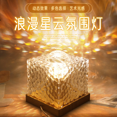 Xiaohongshu Rotating Water Ripple Night Lamp Creative Bedside Flame Atmosphere Lamp Gift Starry Sky Universe Projection