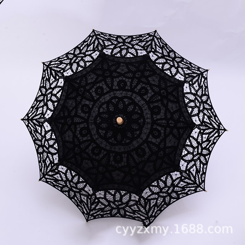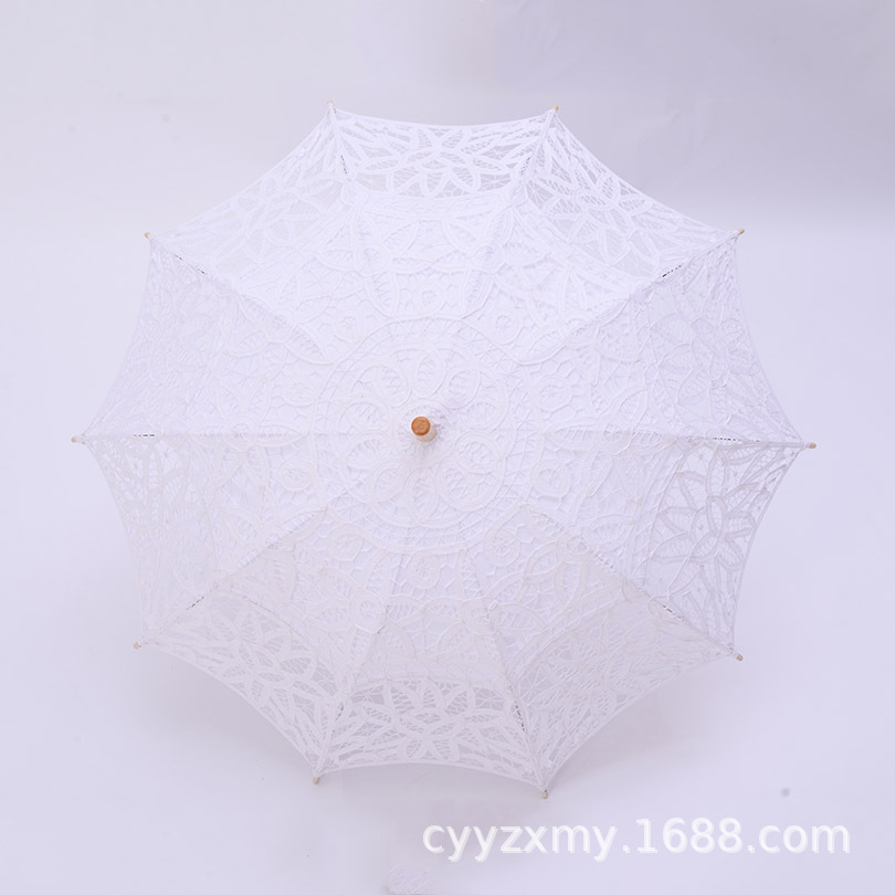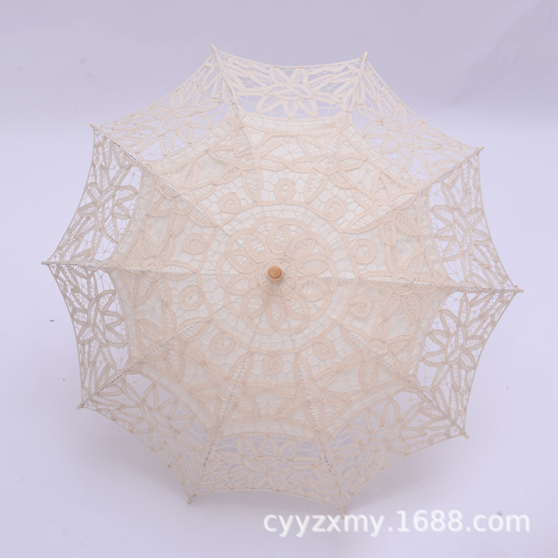 Embroidered Lace Trim Umbrella | Cotton Fabric Hanging Dance & Photography Decorative Umbrella | Wedding, European/American Style, Travel Parasol