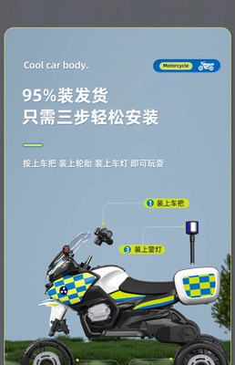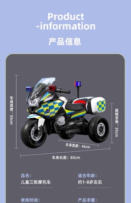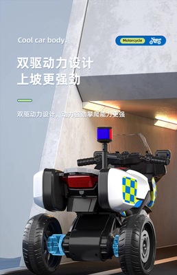Children's Electric Trike Motorcycle for Boys and Girls, Charging Remote Control Baby Kids Car, Seating Electric Police Car