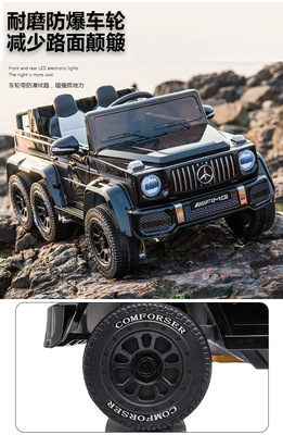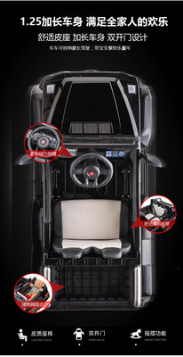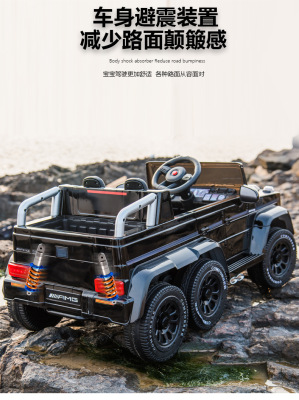 Six-Wheel Drive Black + 12V 12-Unit Large Battery Music Swing Bluetooth Leather Seat + Remote Control + Portable Charger