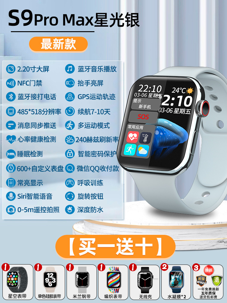 S9Pro Max【銀】✅2.2寸屏+240Hz刷新率+藍牙接打電話+無線快充+大電池+心率檢測