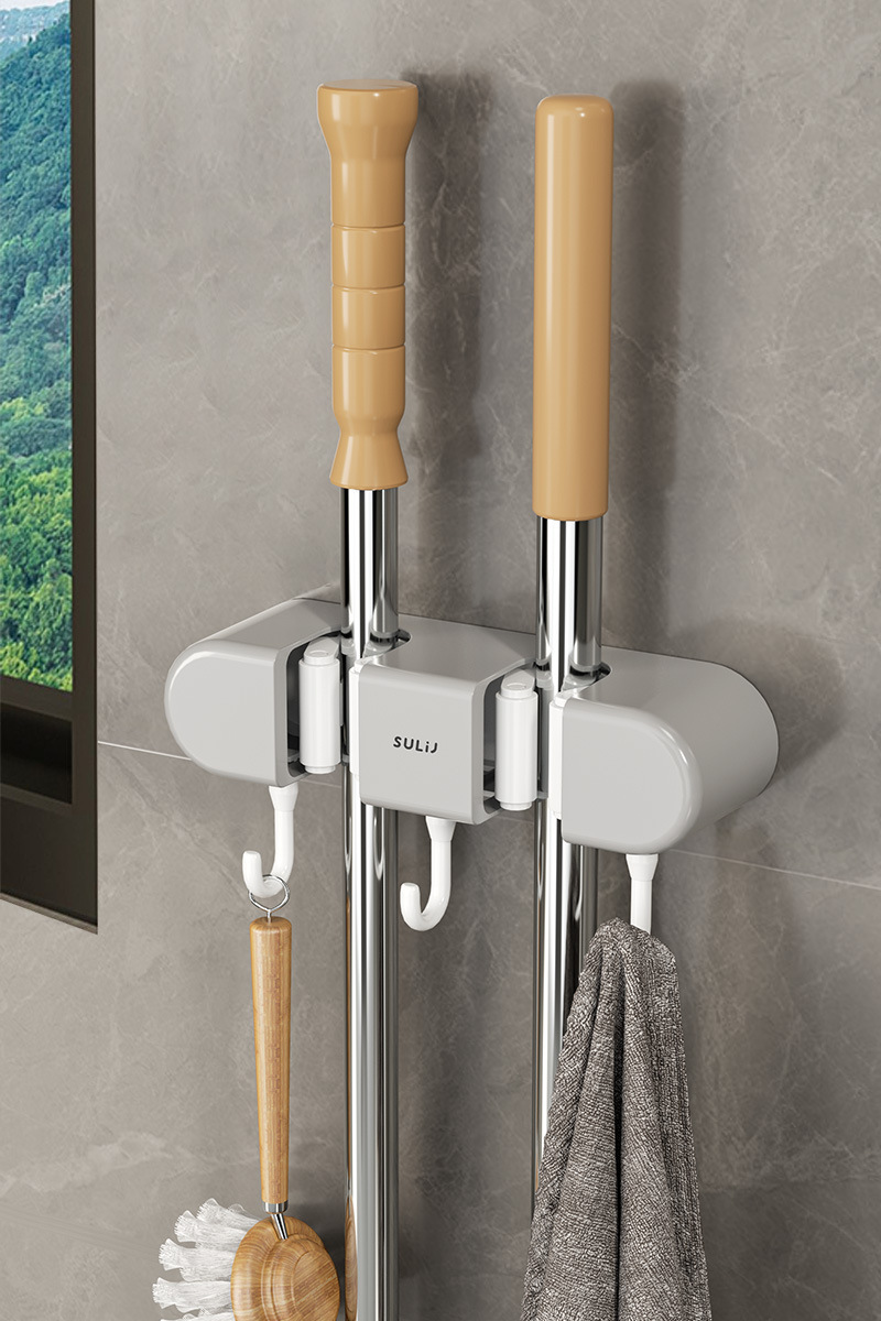 Specification: Versatile Gray / Dual-layer Mop Holder (Dual Adhesive Pads) 1 Pack