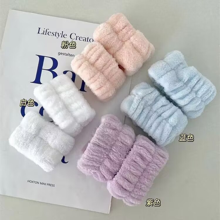 一件代發洗臉手腕帶吸水手環擦汗護腕帶毛絨發圈女綁頭髮洗漱防濕