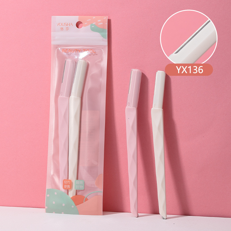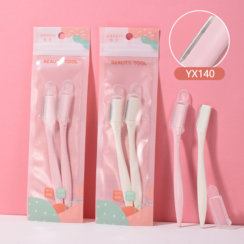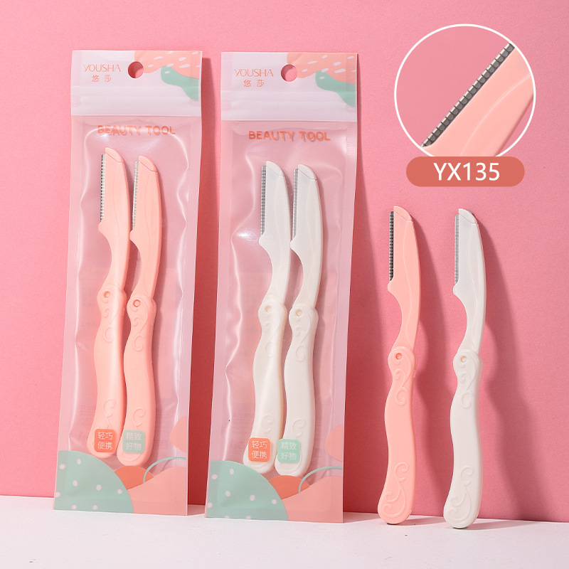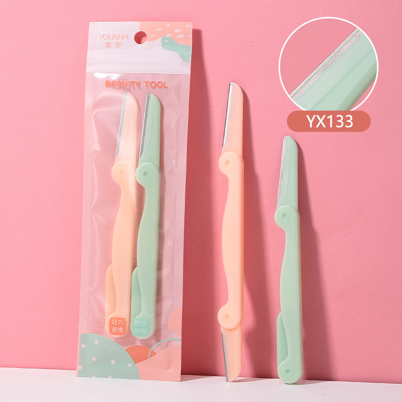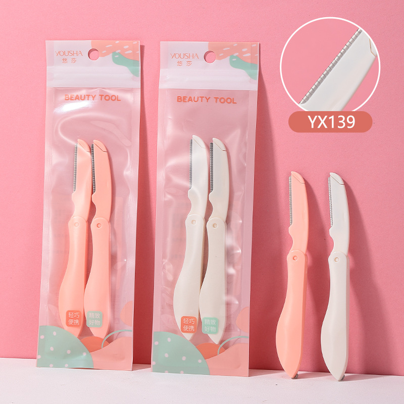 悠莎 修眉刀兩支裝 不鏽鋼微距摺疊刮眉刀 美妝工具批發 YX130