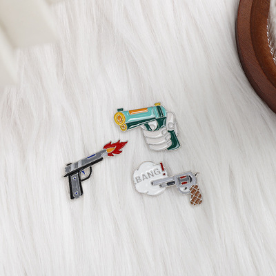 歐美新品創意卡通手槍胸針 合金滴油配飾衣服包包學生禮品