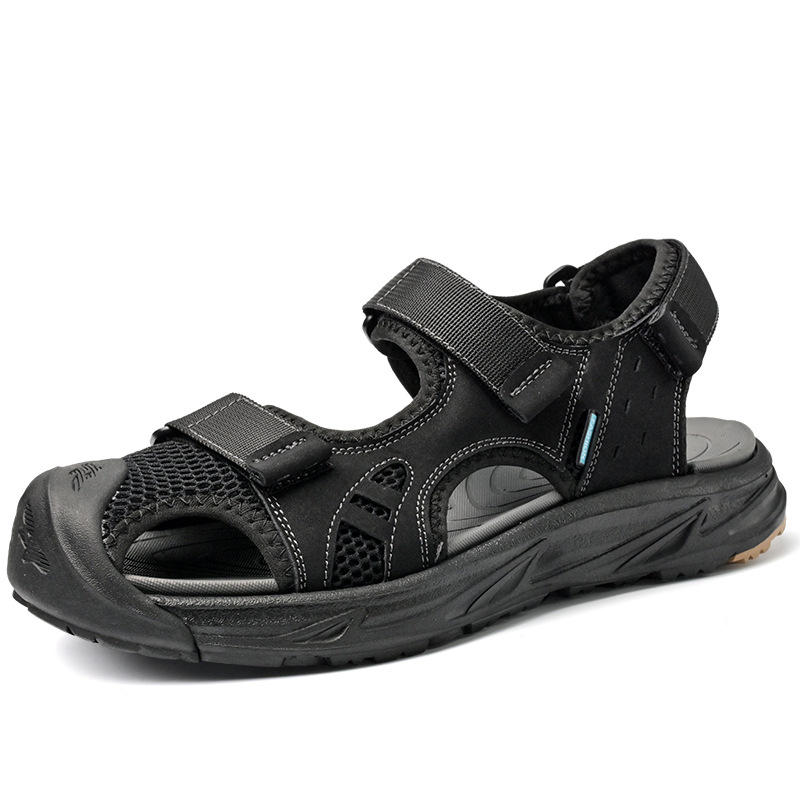 涼鞋男2024新款夏季透氣真皮沙灘鞋男一腳蹬鏤空透氣包頭戶外男鞋