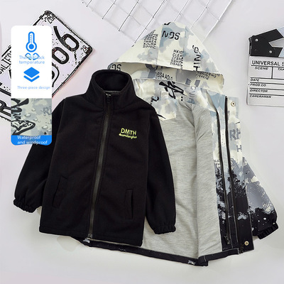 Children's Spring and Autumn 3-in-1 Windproof Jacket 2024 New Leisure Outerwear for Older Children Winter Fleece Top