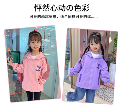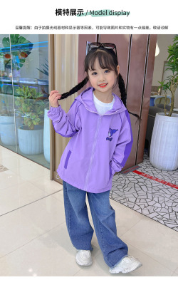 Girls' Spring/Autumn Coat 2024 New Collection: Color-Blocked Kids' Spring Windbreaker Jacket, Korean-style Children's Wear