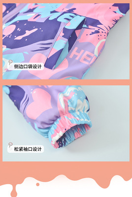 Children's Women's One-Piece Fleece Winter and Autumn Downproof Windproof Waterproof Ski Jacket Cartoon Hooded Coat