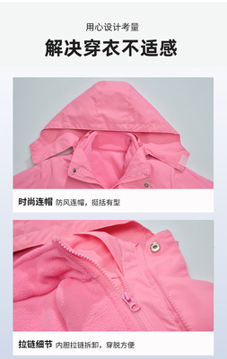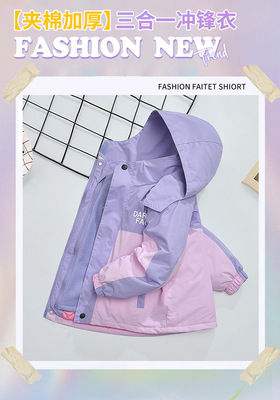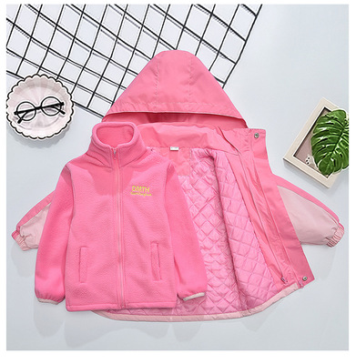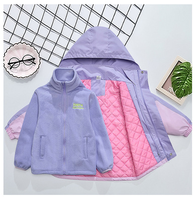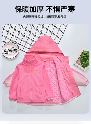 Girls' Autumn/Winter Thick Fleece-Lined 3-in-1 Detachable Windproof Jacket – 2024 New Collection, Children's Autumn Clothing