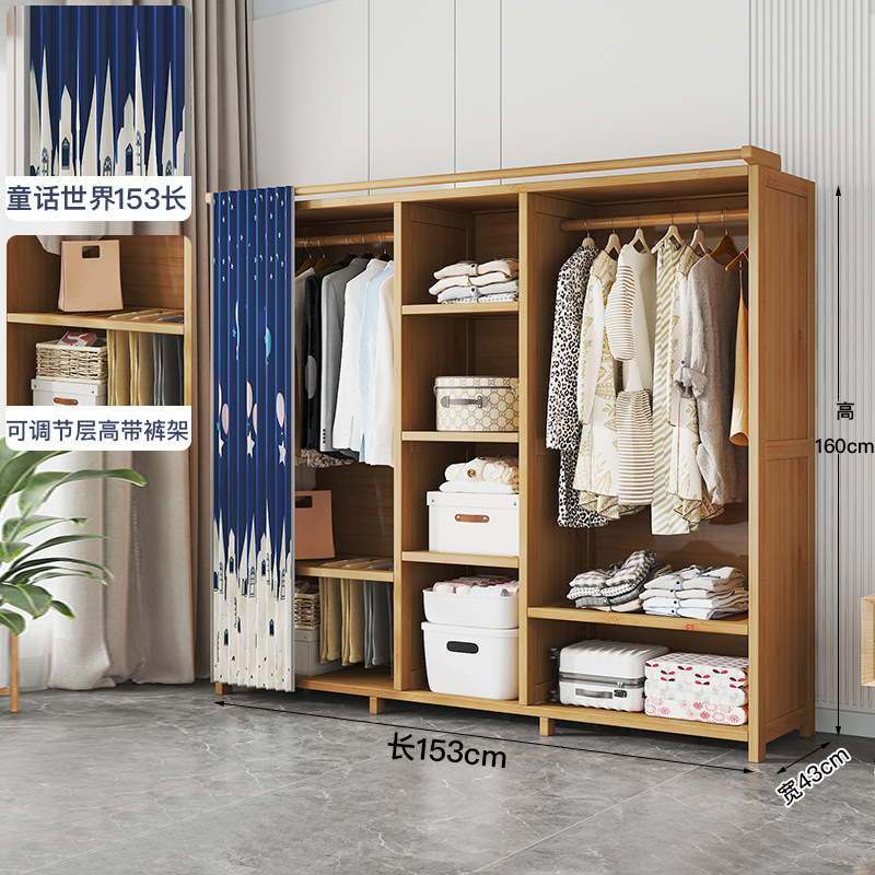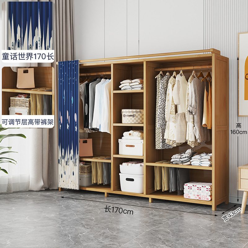 Simple and Minimalist Wardrobe for Bedroom, Household Wardrobe, Children's Combination Wardrobe, Economical Dustproof Wooden Floor-to-Floor Wardrobe with Thickening