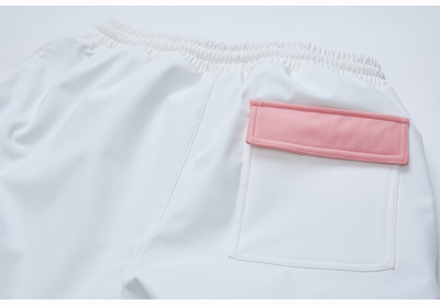 A pinkish-gray white top + reflective white pants