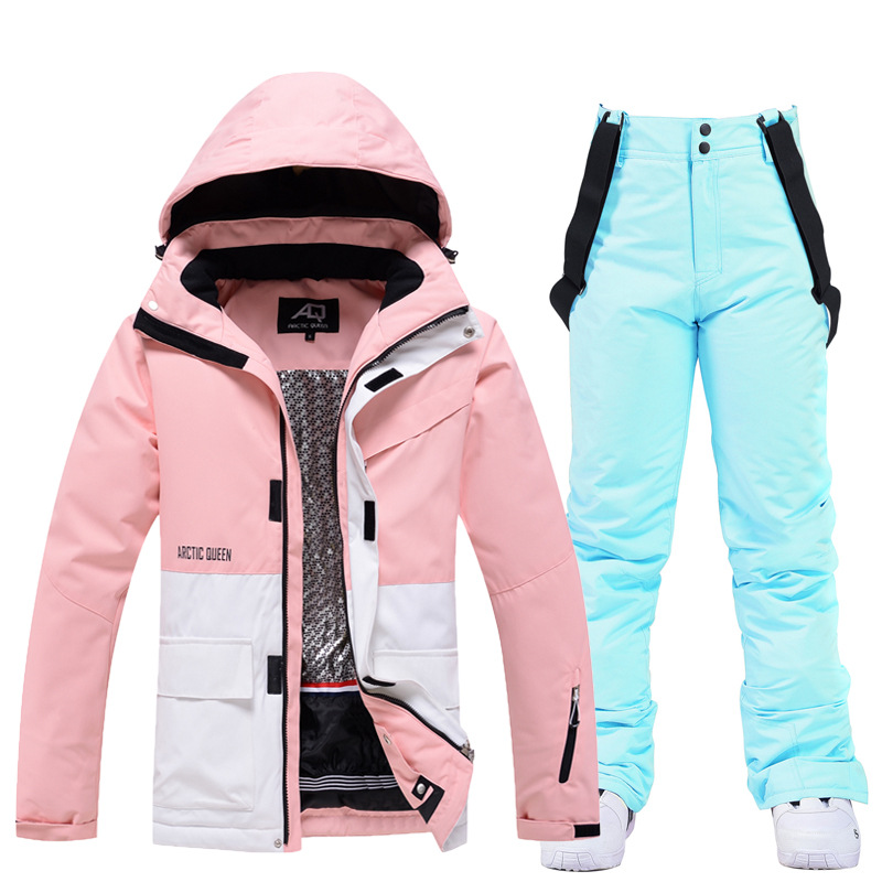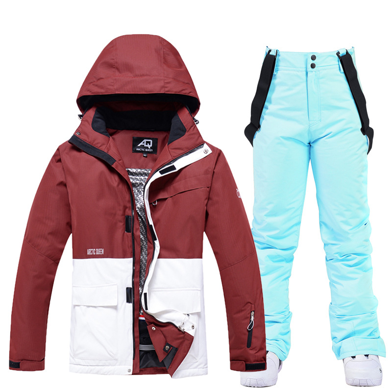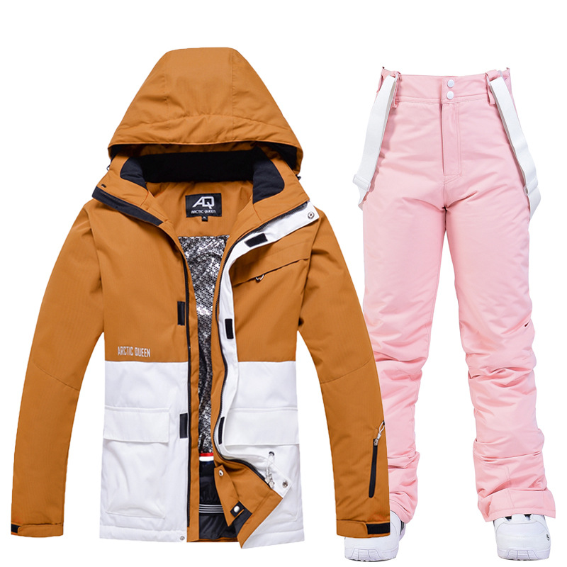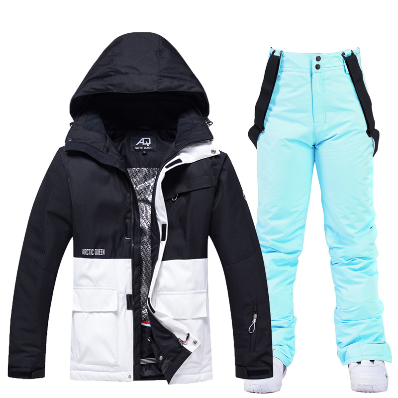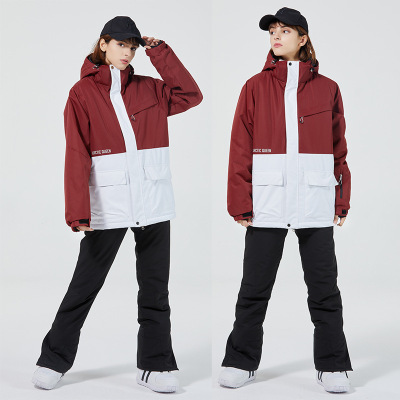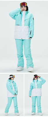 New unisex snowboard suit set, warm and thick Korean-style snowboard jacket and pants set