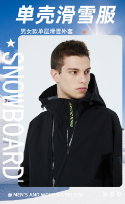 Men's and Women's Unisex Ski Jacket, Thin Single Shell, Outdoor Windproof and Waterproof, Single-Skis and Snowboard Skiwear, 3L Fabric, New Arrival