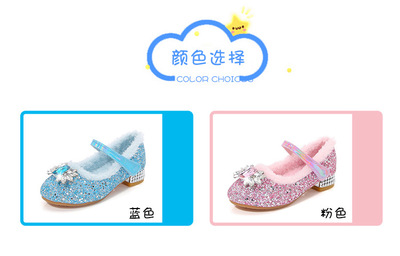女童鞋秋冬季新款加絨愛莎公主鞋女寶寶水晶鞋小女孩高跟鞋中大童