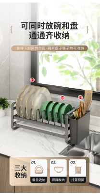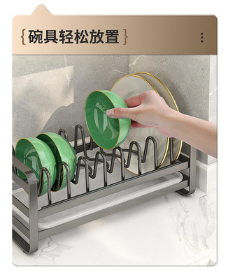 Cabinet Carbon Steel Bowl Plate Drain Rack Kitchen Spoon Chopstick Tube E-commerce Counter Top Drawer Bowl Plate Storage Shelf
