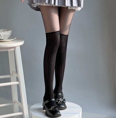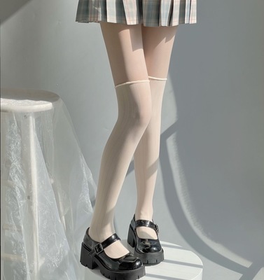 拼接長高筒黑色絲襪少女jk美腿塑形過膝連褲白絲襪純欲夏季超薄款