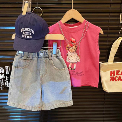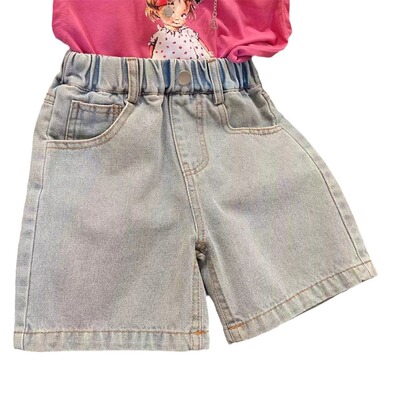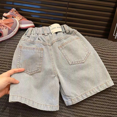 Girls' denim shorts 2024 summer new hot pants baby children's washed soft denim pants kids' clothing L55199