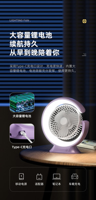 New Cross-border Desk Lamp Electric Fan Home Office Desktop Small Fan Table Fan Dual Charging Reversible Air Circulator
