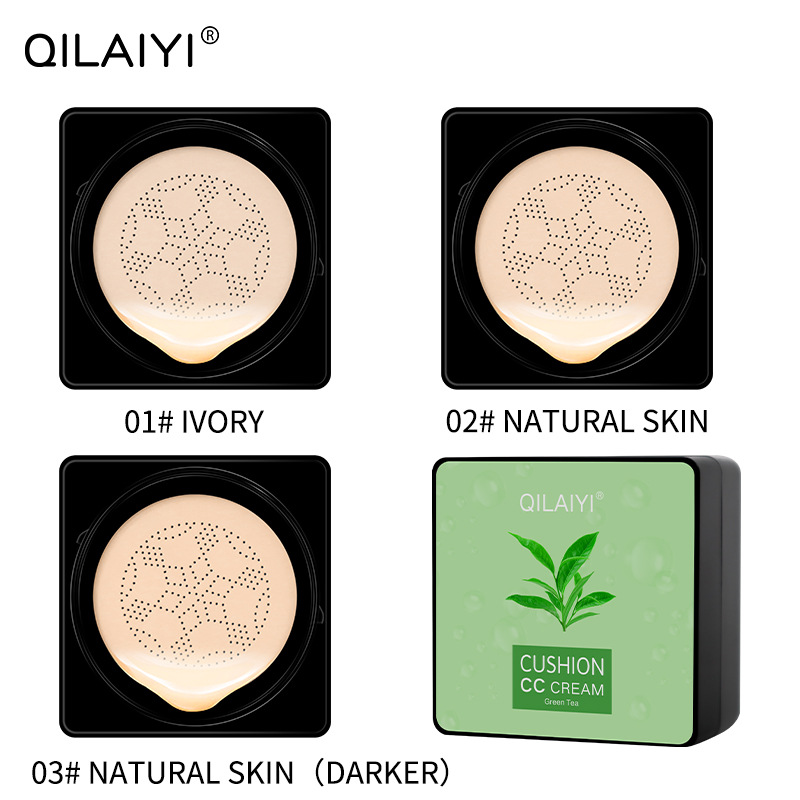 QILAIYI-3101綠茶蘑菇氣墊粉底保濕遮瑕服帖奶油肌跨境專供