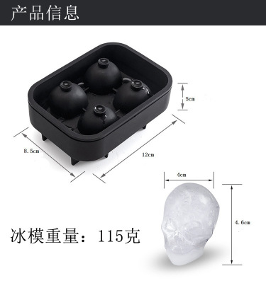 食品級硅膠 骷髏頭冰格模具 4孔連骷髏頭冰格