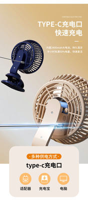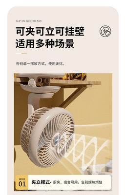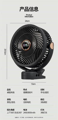 Yangtze Desktop Fan with USB Charging, Long Battery Life, Household Office Clip Fan, Outdoor Hanging Fan, 8-inch Floor Fan