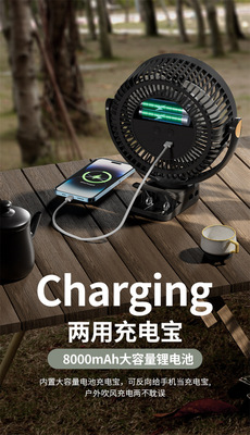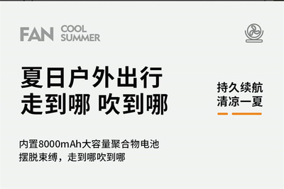 Yangtze 8-inch collapsible fan 8000mAh [with power bank] black