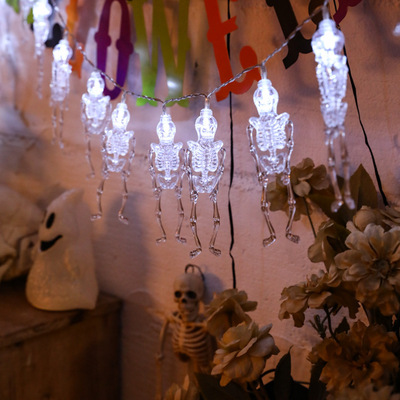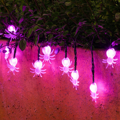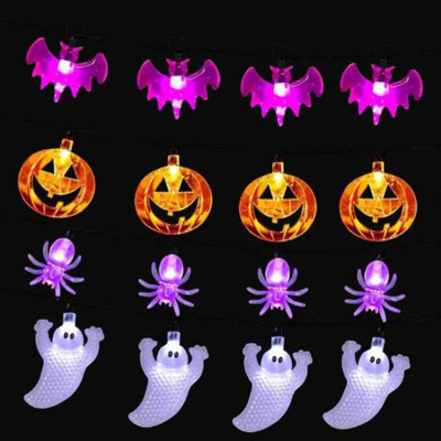 跨境led萬聖節鬼節系列裝飾燈蜘蛛蝙蝠燈串南瓜骷髏頭電池燈彩燈