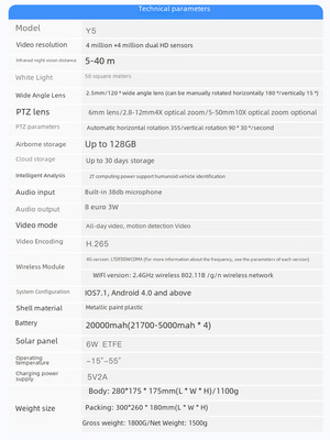 Specification: Y5-WIFI Chinese version (4x zoom)