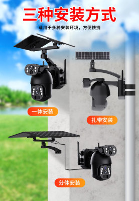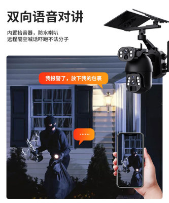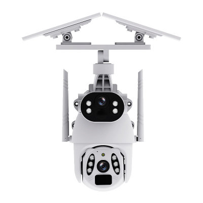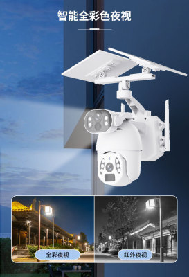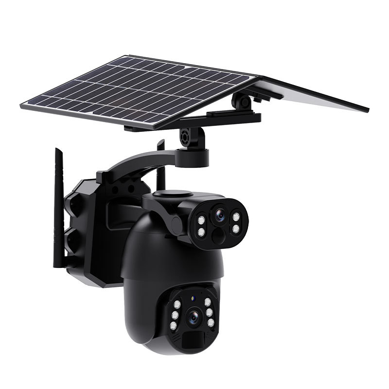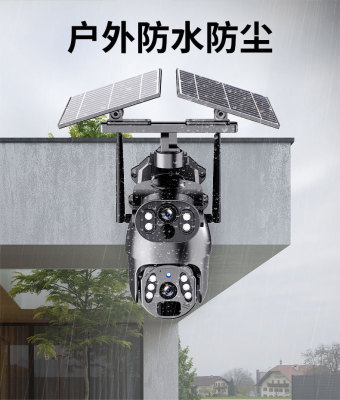 Pan-Tilt Solar Camera Dual-View Low Power Night Vision High Definition Full Color Dome Camera Gun and Dome Linkage Monitor