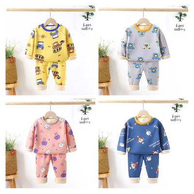 Children's Fleece Warm Set 24 Autumn/Winter New Long Sleeve Middle/Big Kids Home Clothing for Boys and Girls Thick Children's Clothing