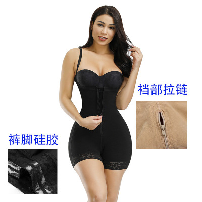 跨境新款連體塑身衣拉鏈排扣束身衣吊帶緊身內衣收腹美體提臀褲女