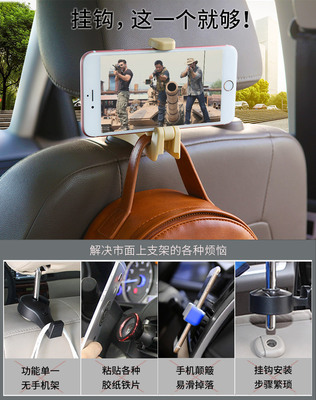 Car Phone Holder, Car Mount Hidden Seat Back Creative Hook, Multifunction Rear Seat Car Hook