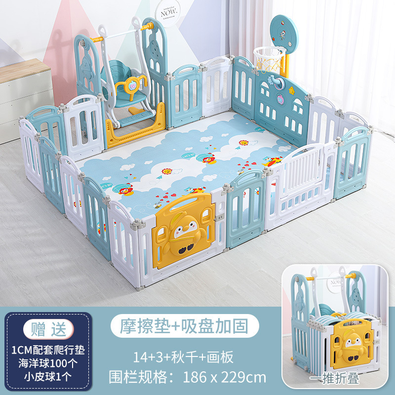 Specification: 1.8m*1.5m Swing + Slide + Basketball Stand + Drawing Board + Rocking Horse + Ball Pit Light Blue