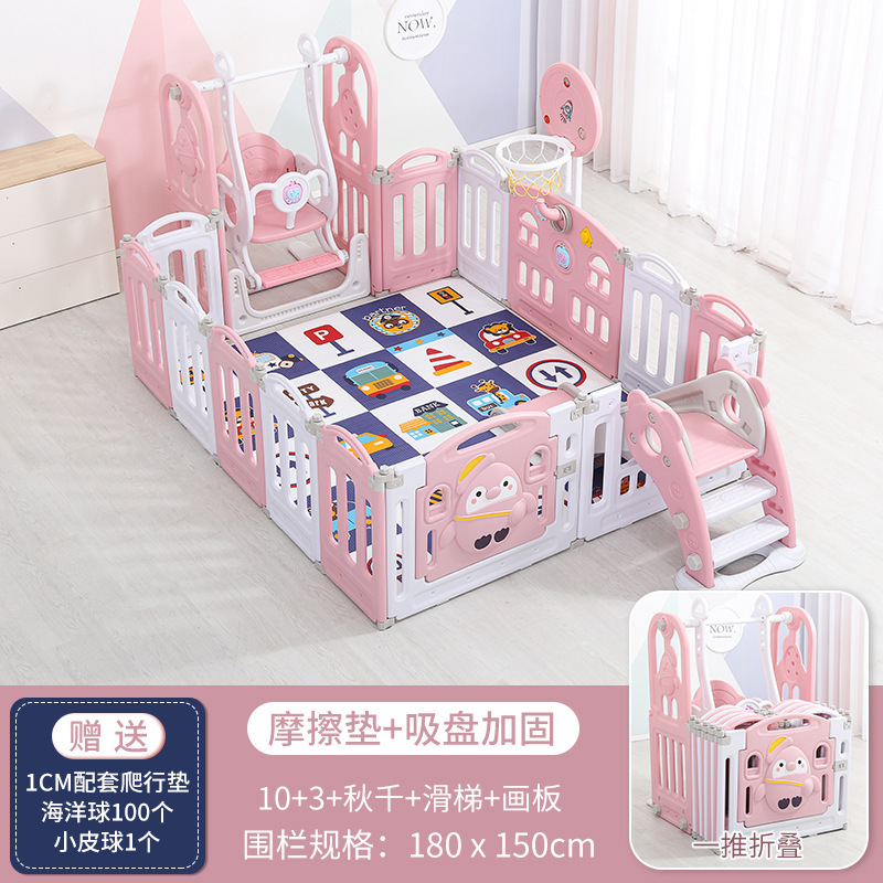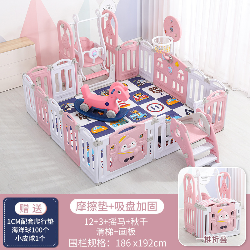 1.92m*1.86m Swing + Slide + Basketball Hoop + Drawing Board + Rocking Horse + Ball Pool Pink