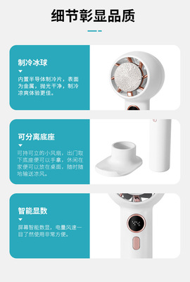 新款跨境數顯製冷風扇 USB充電手持冰敷風扇 戶外便攜多功能風扇