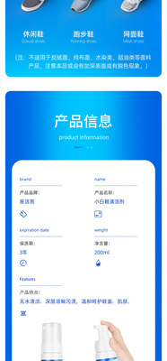 Easier Clean Factory Wholesale 200ml White Sneaker Cleaner Foam Washless White Sneaker Mesh Shoe Cleaner